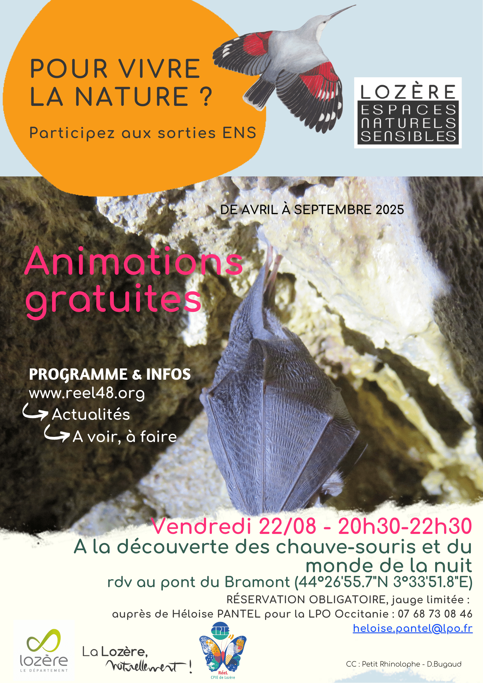 Héloise vous donnera rendez-vous au parking à gauche après le pont traversant Le Bramont sur la D25 avant Saint Etienne du Valdonnez après la validation de votre inscription au 07.68.73.08.46 ou à heloise.pantel@lpo.fr. Attention, la jauge est limitée !