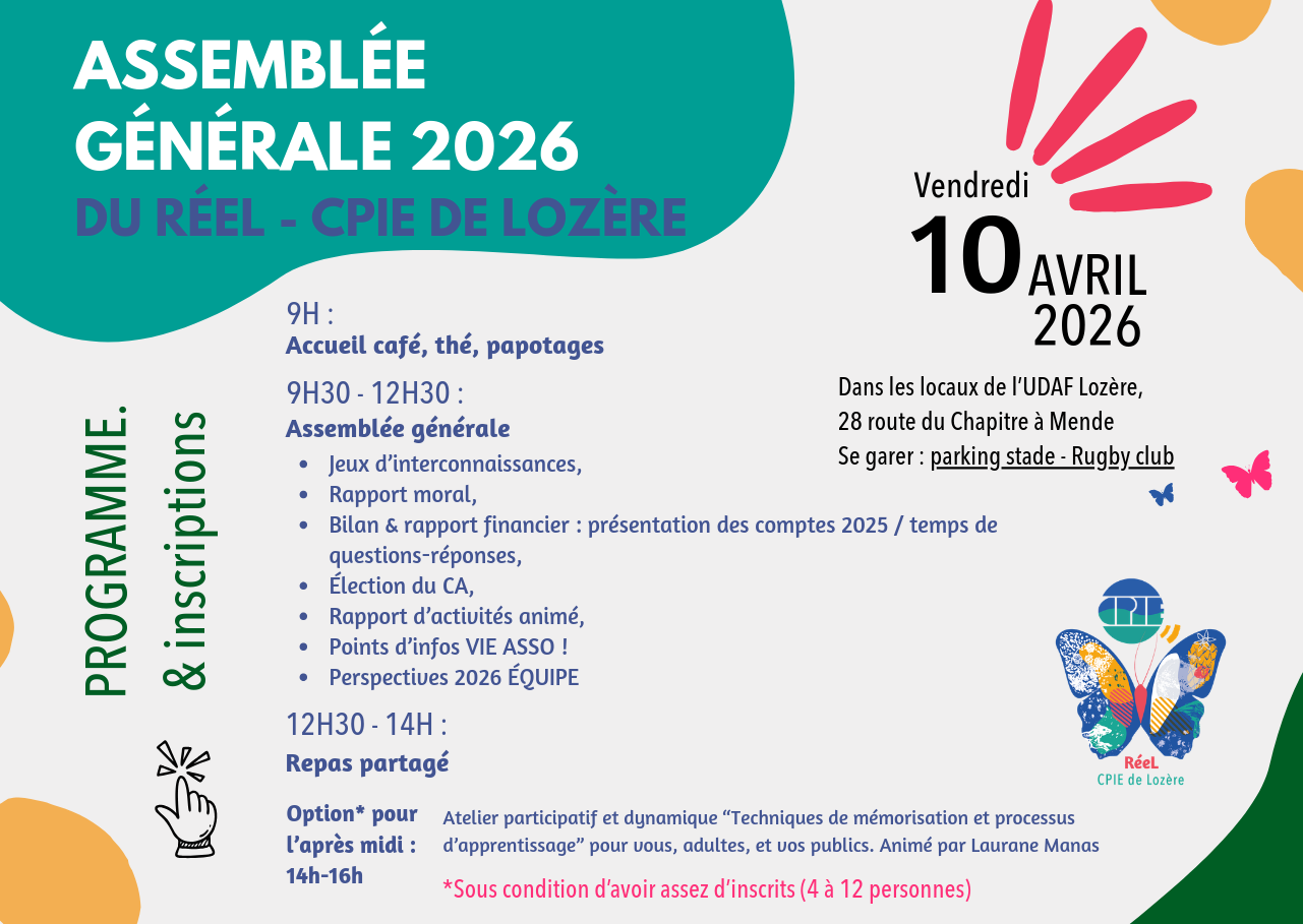 Le RéeL - CPIE de Lozère vous convie à son Assemblée Générale le vendredi 10 avril prochain,