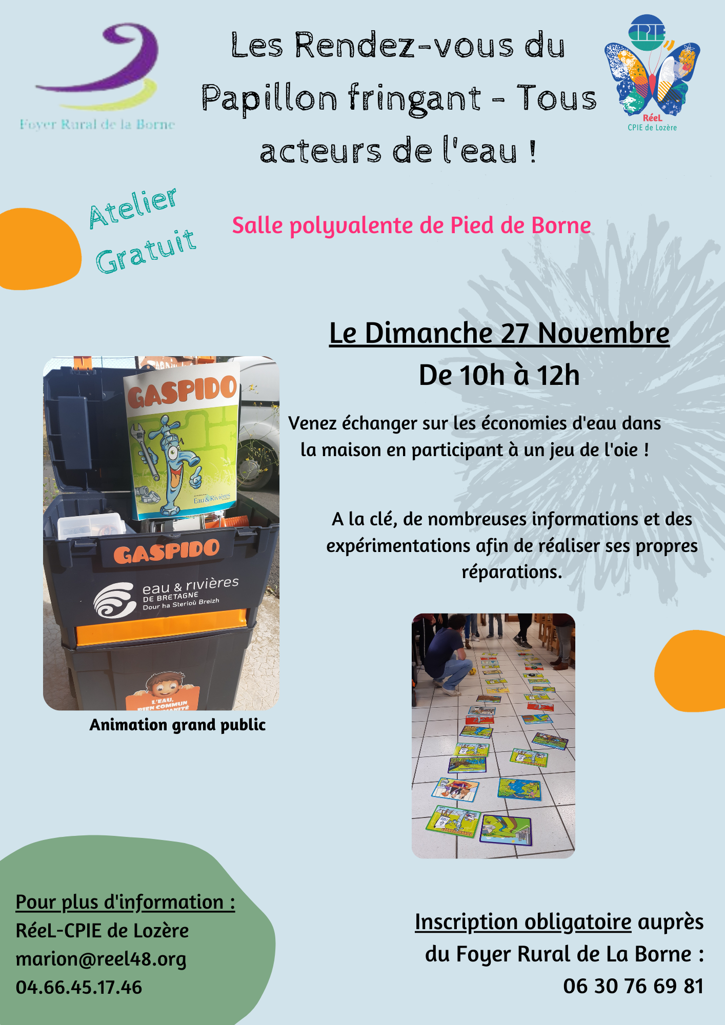 Atelier gratuit et Inscription obligatoire auprès du Foyer Rural de La Borne : 06 30 76 69 81